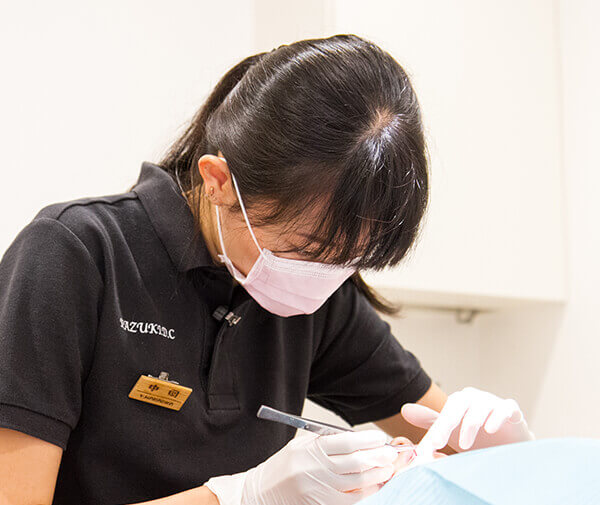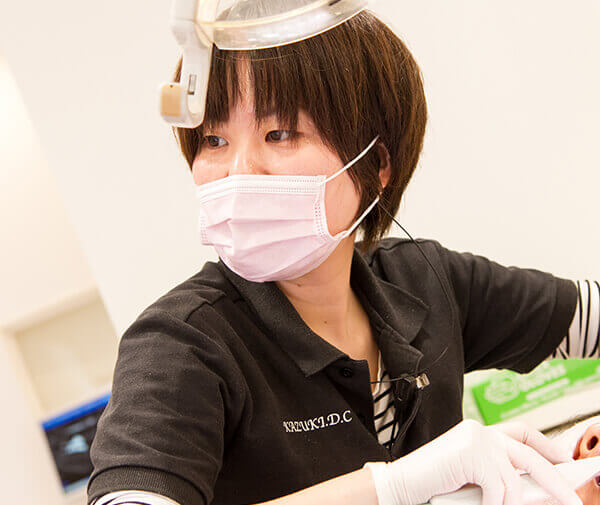 9:00患者様のお出迎え、お会計、次回のご予約を取ることが業務内容です。電話対応もします。